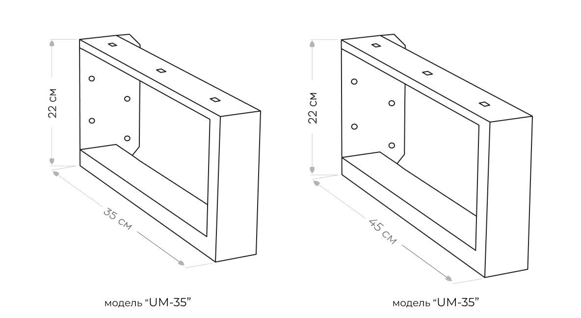 Модель UM может быть изготовлена в двух размерах: 35х22см и 45х22см. Минимальная партия изготовления под заказ - 50 шт. Свяжитесь с нами, чтобы получить оптовый прайс