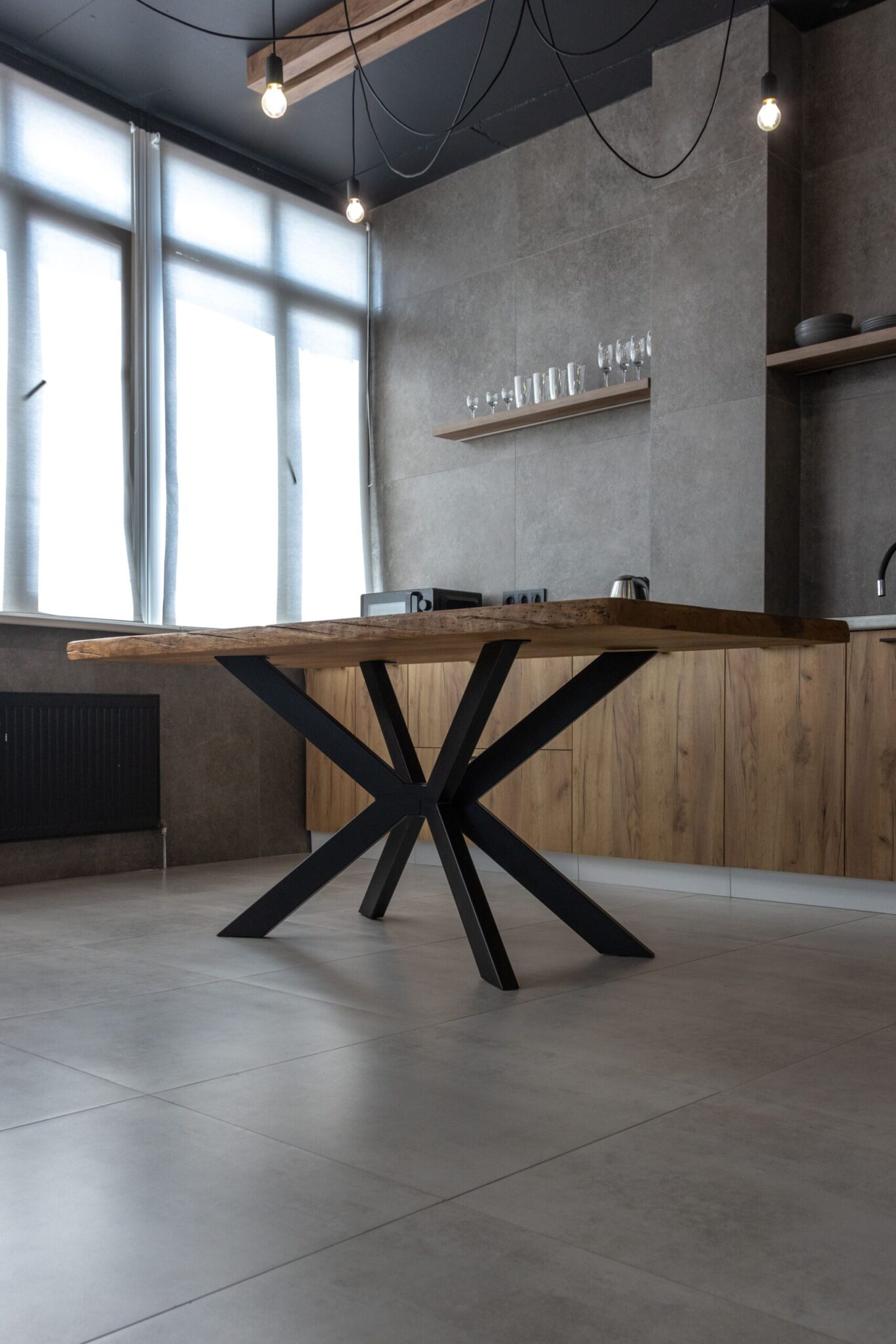Данная модель металлического подстолья подходит для прямоугольных или овальных кухонных столов в стиле Лофт.