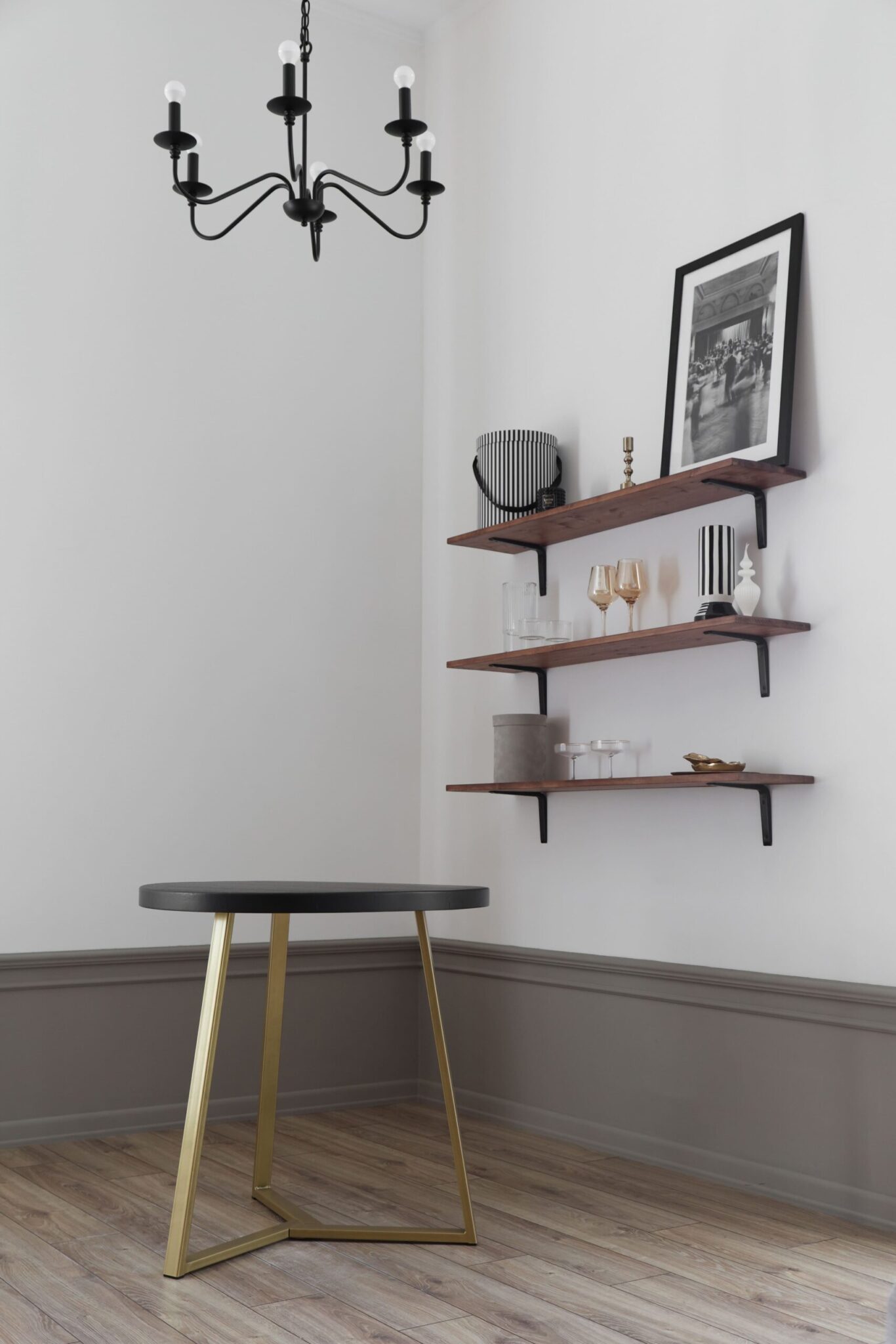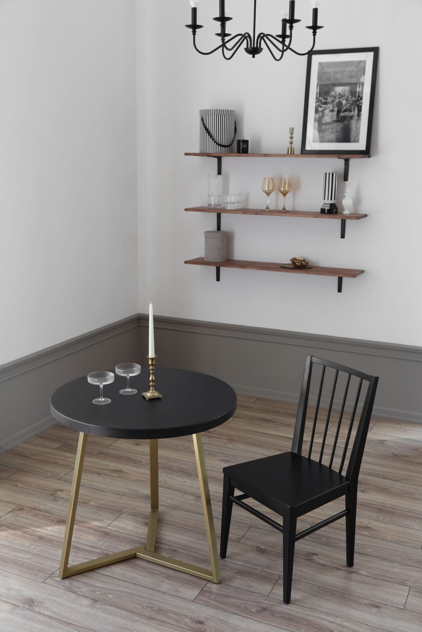Данная модель металлического подстолья из профильной трубы подходит для небольших круглых кухонных столов.