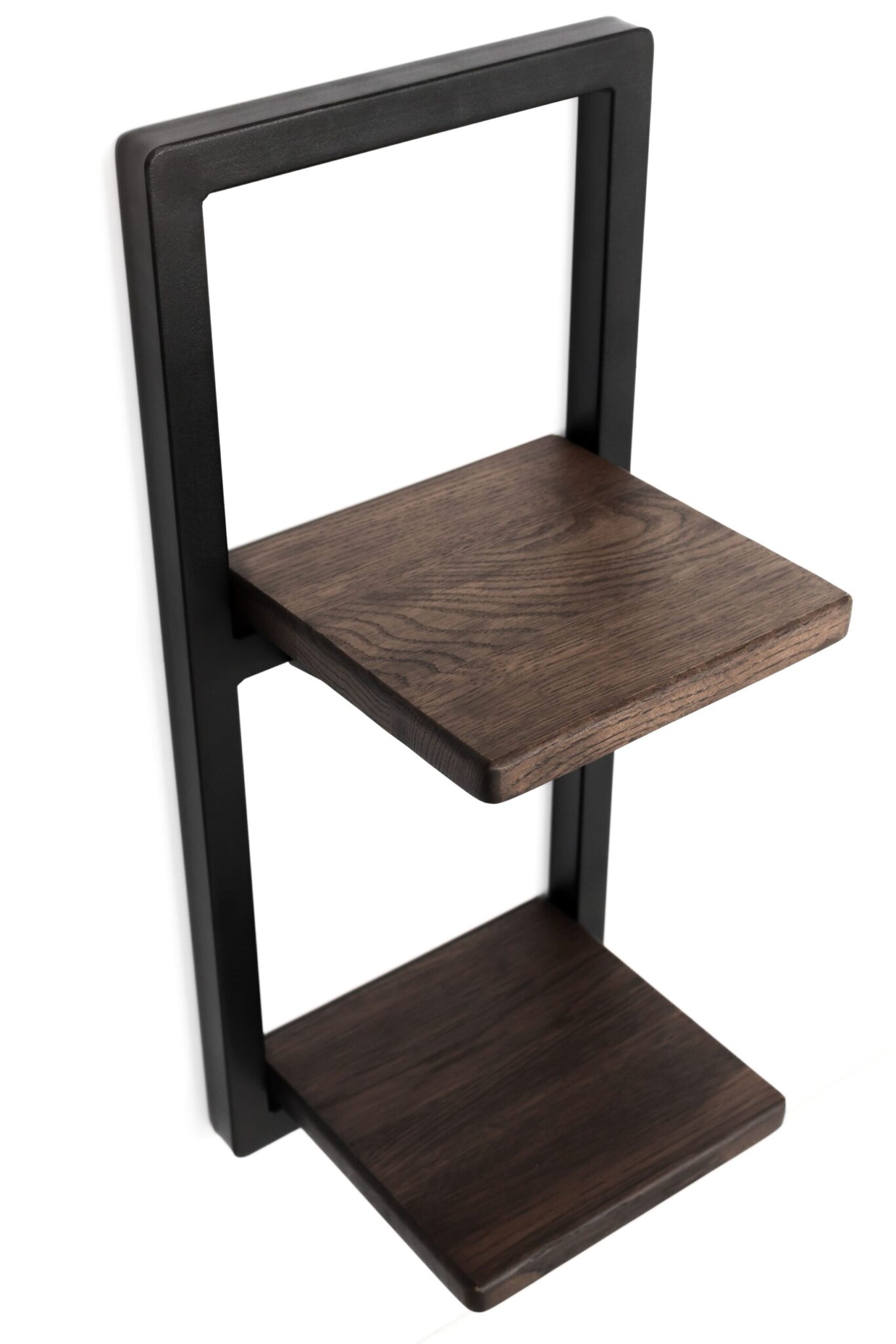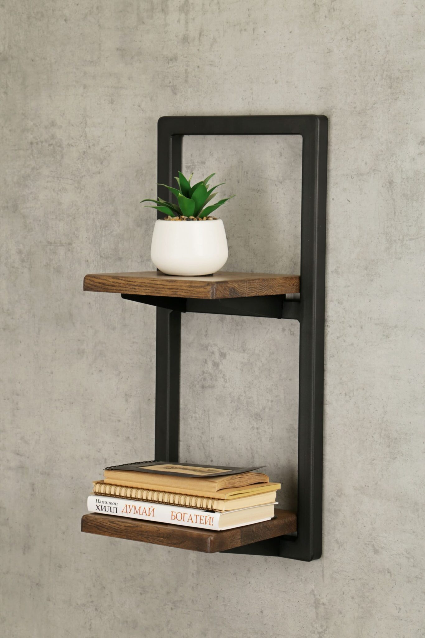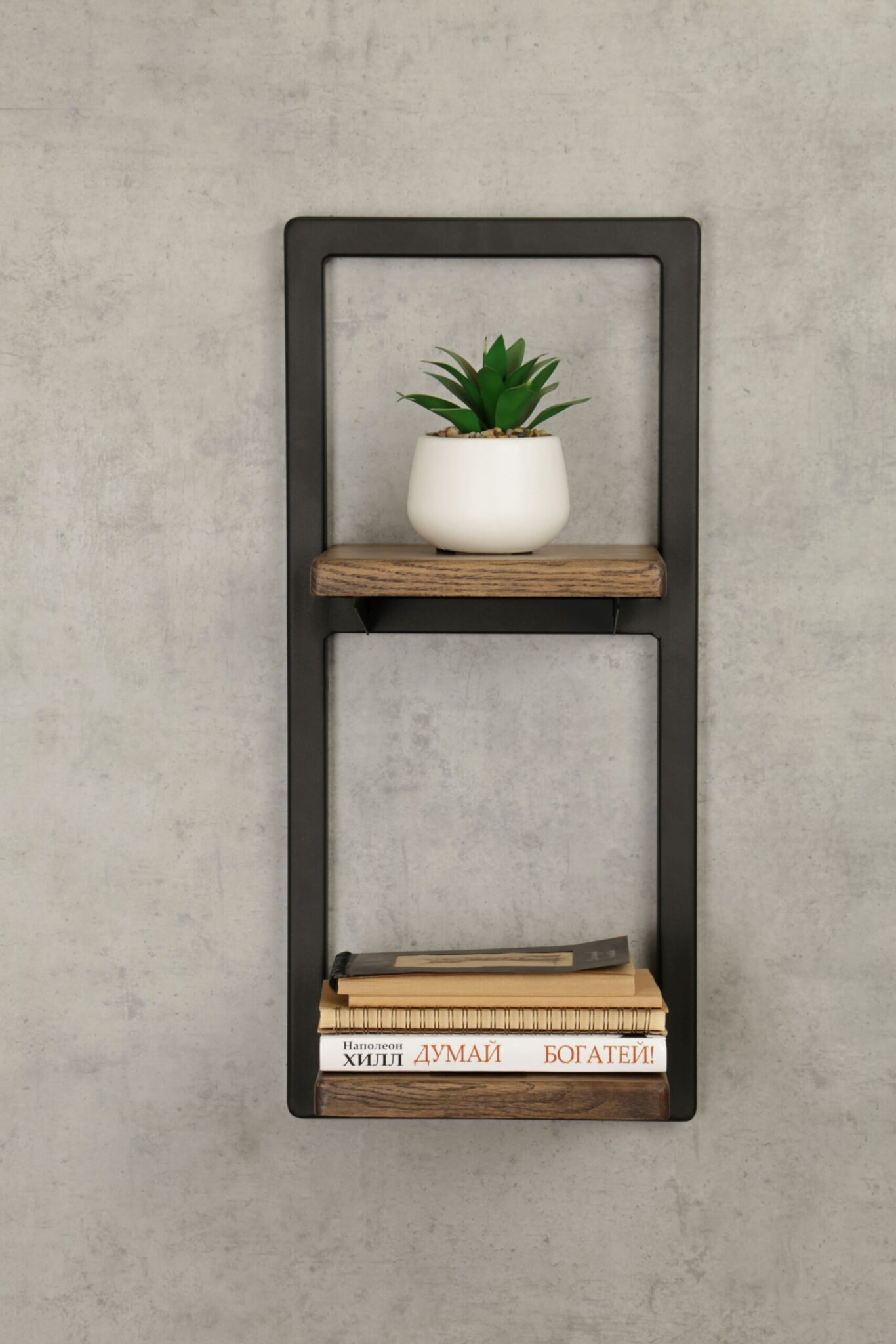Металлическая настенная полка из массива дуба — это удачное решение как для декорирования пространства, так и для организации хранения аксессуаров и приятных мелочей, музыкальных колонок, роутера или модема.