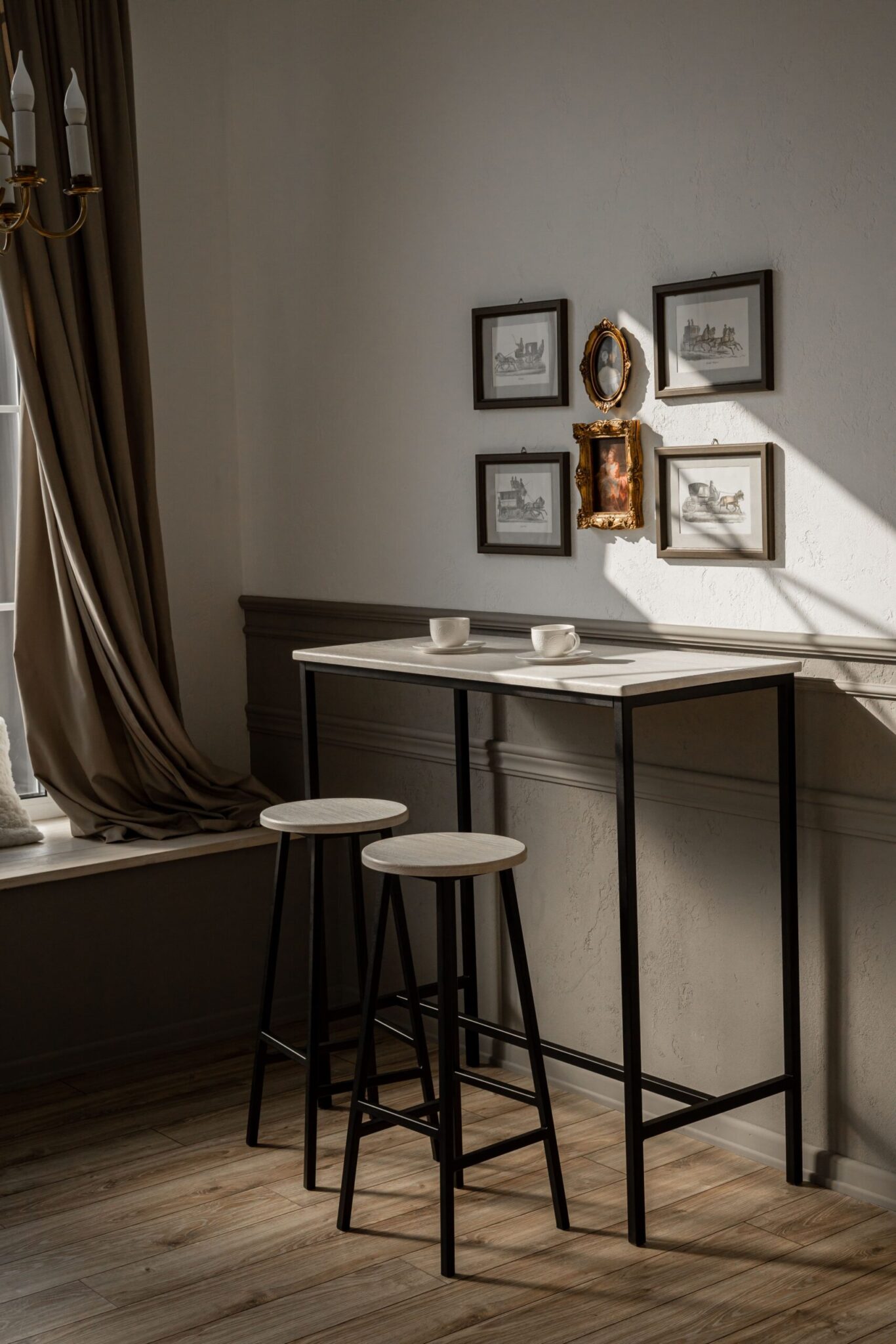 Барный стол универсален и отлично вписывается в любой интерьер, подходит как для домашних, так и общественных пространств.