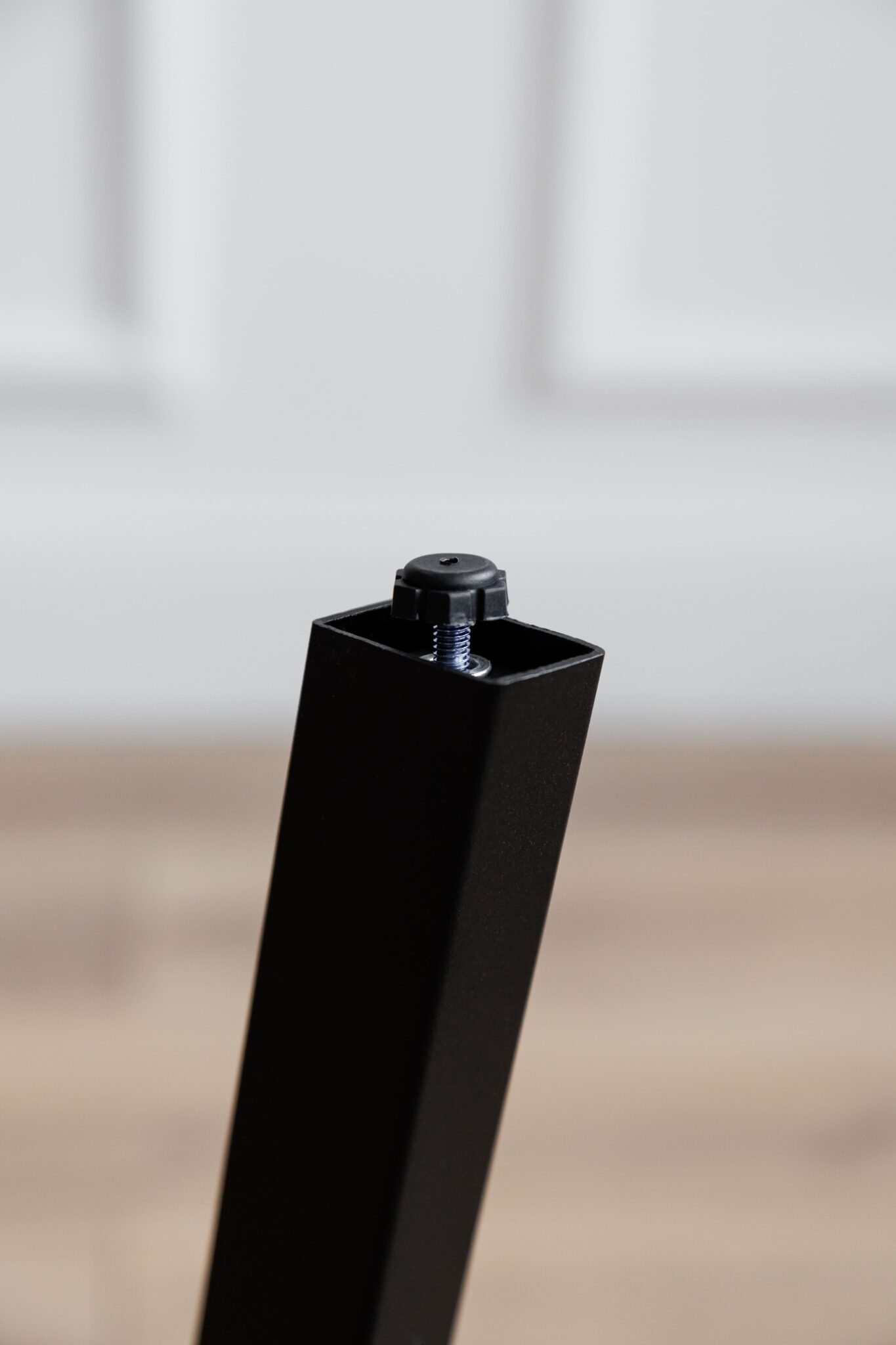 Полимерное покрытие ножек — устойчиво к воде, царапинам и появлению ржавчины. На ножках стола установлены регулируемые ножки, благодаря которым можно компенсировать несовершенства пола и добиться идеальной устойчивости.