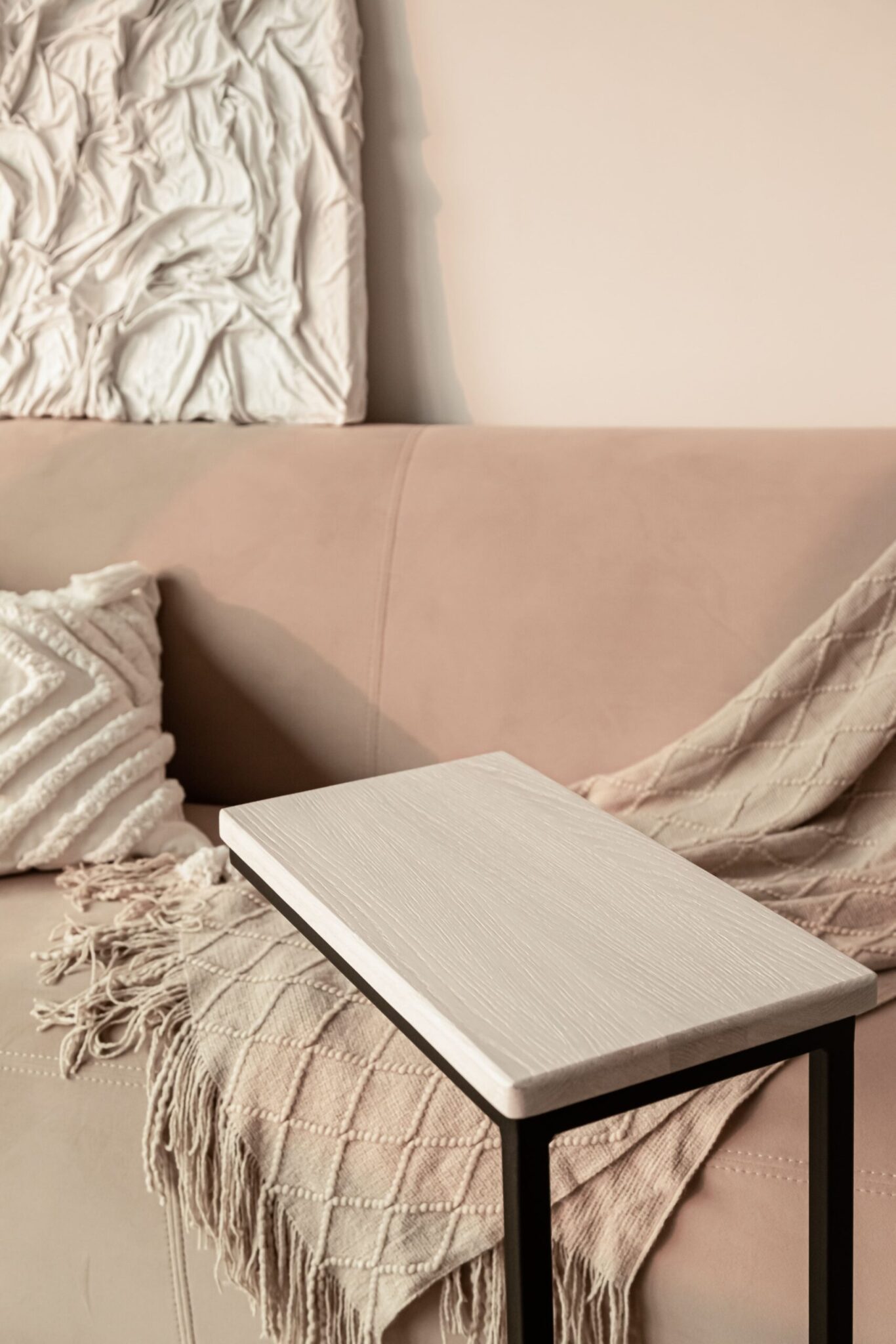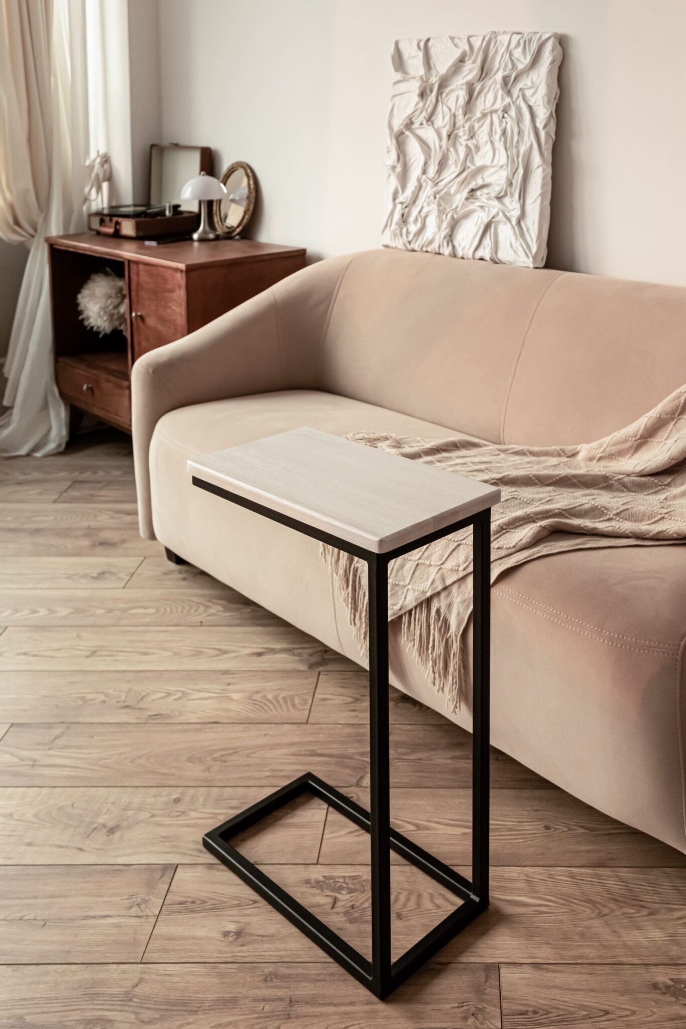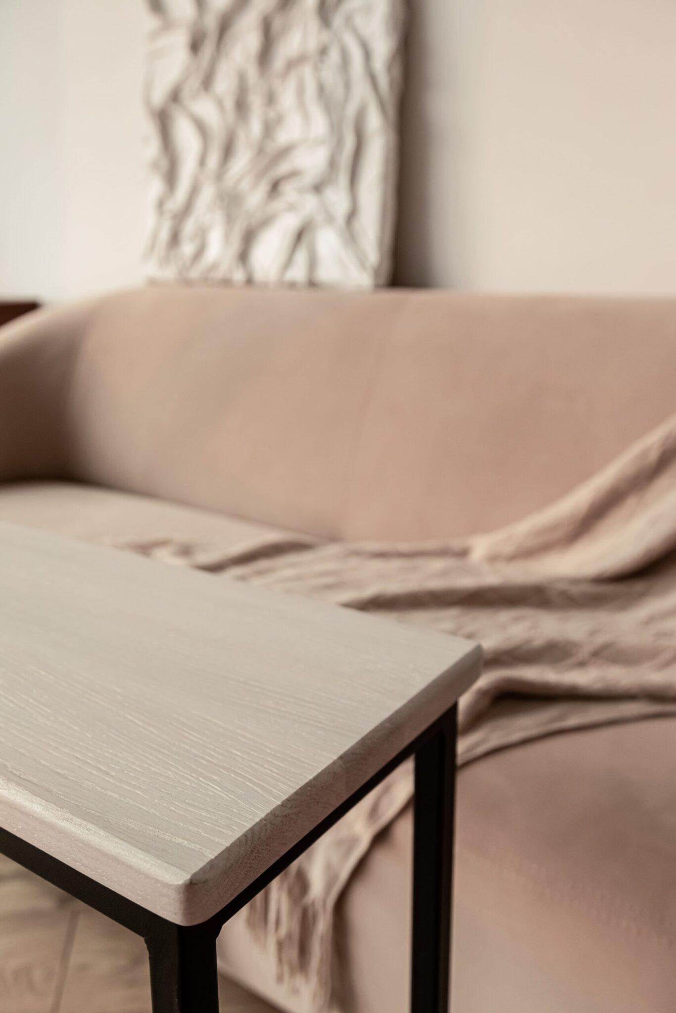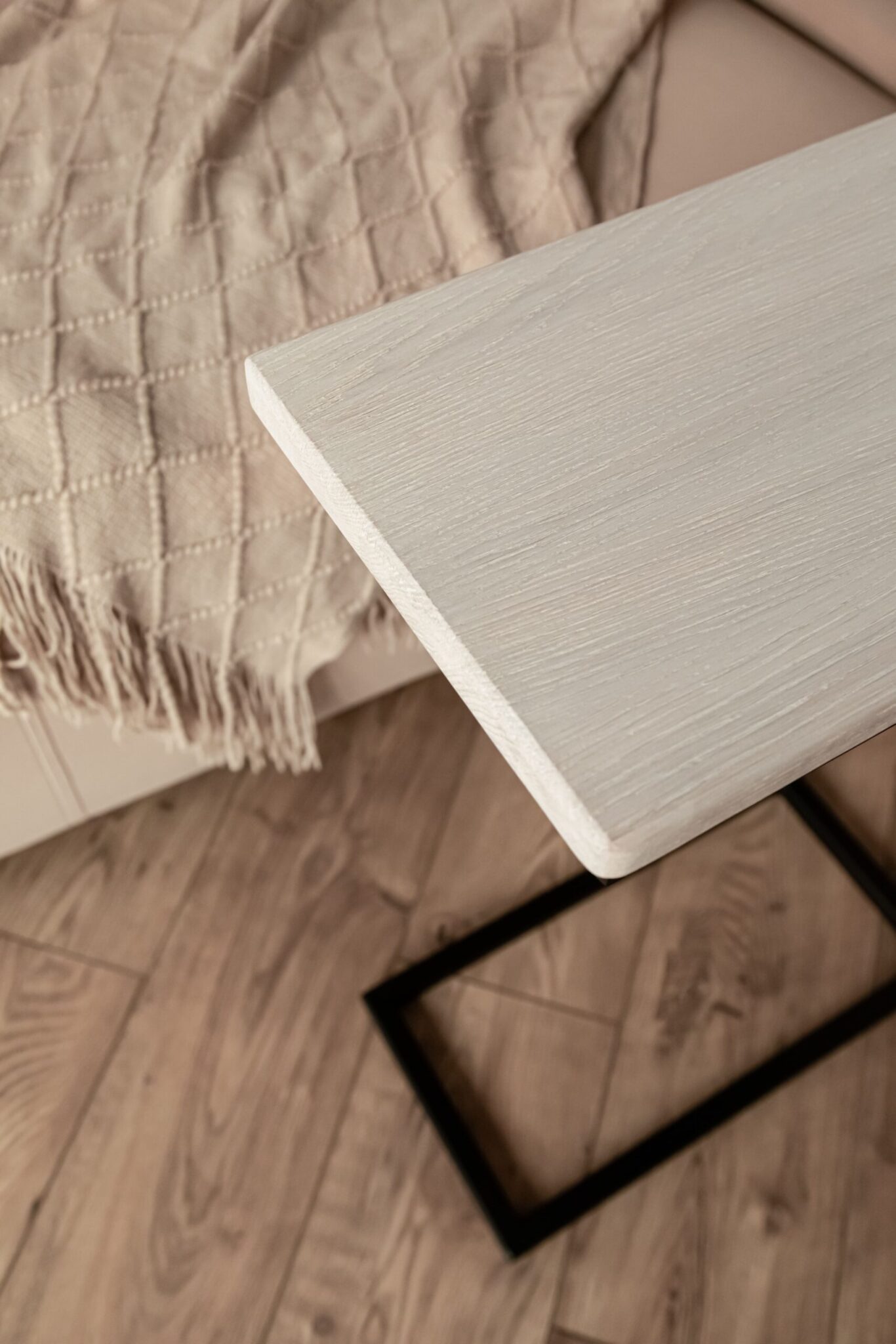 Приставной столик из массива дуба и стали создан для максимального удобства. Легко размещается у подлокотника дивана или кресла — для чашки кофе, книги или ноутбука. Прочное цельносварное основание гарантирует устойчивость, а натуральное дерево — долговечность и экологичность.