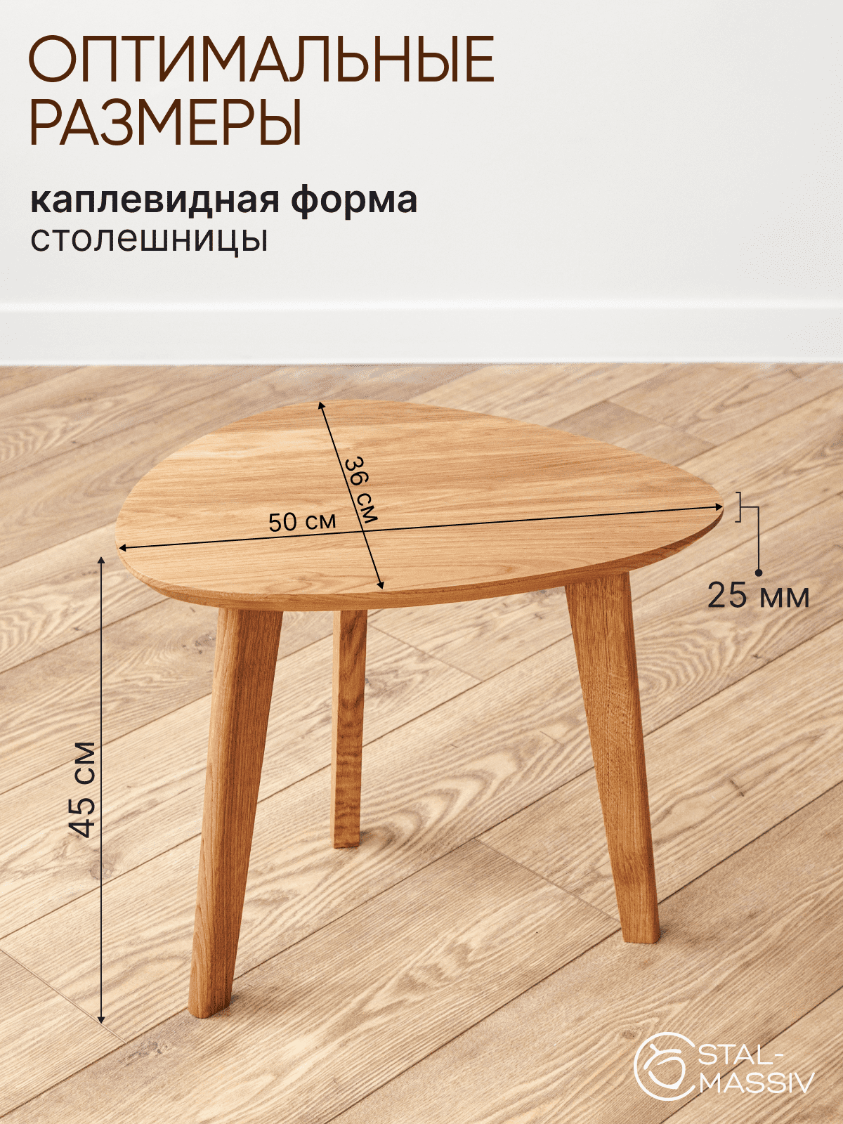 Столик журнальный дубовый DROOP-45 натуральный дуб