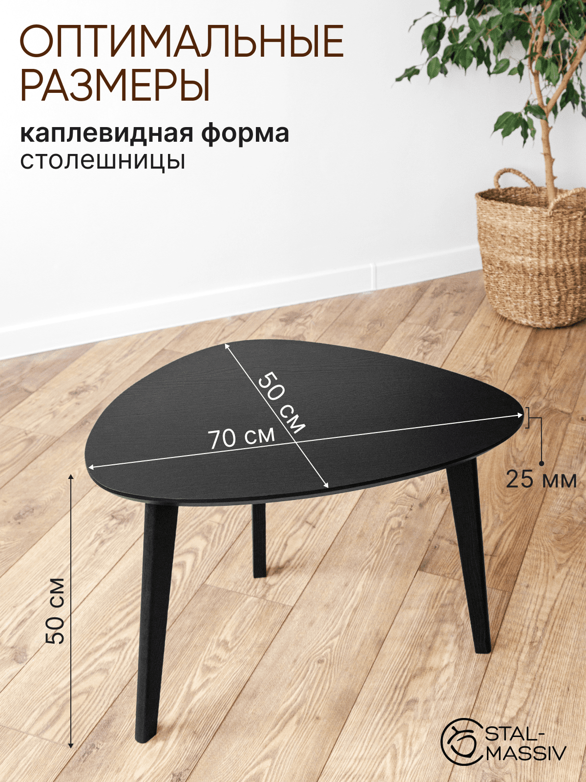 Столик журнальный дубовый DROOP-50 черный дуб