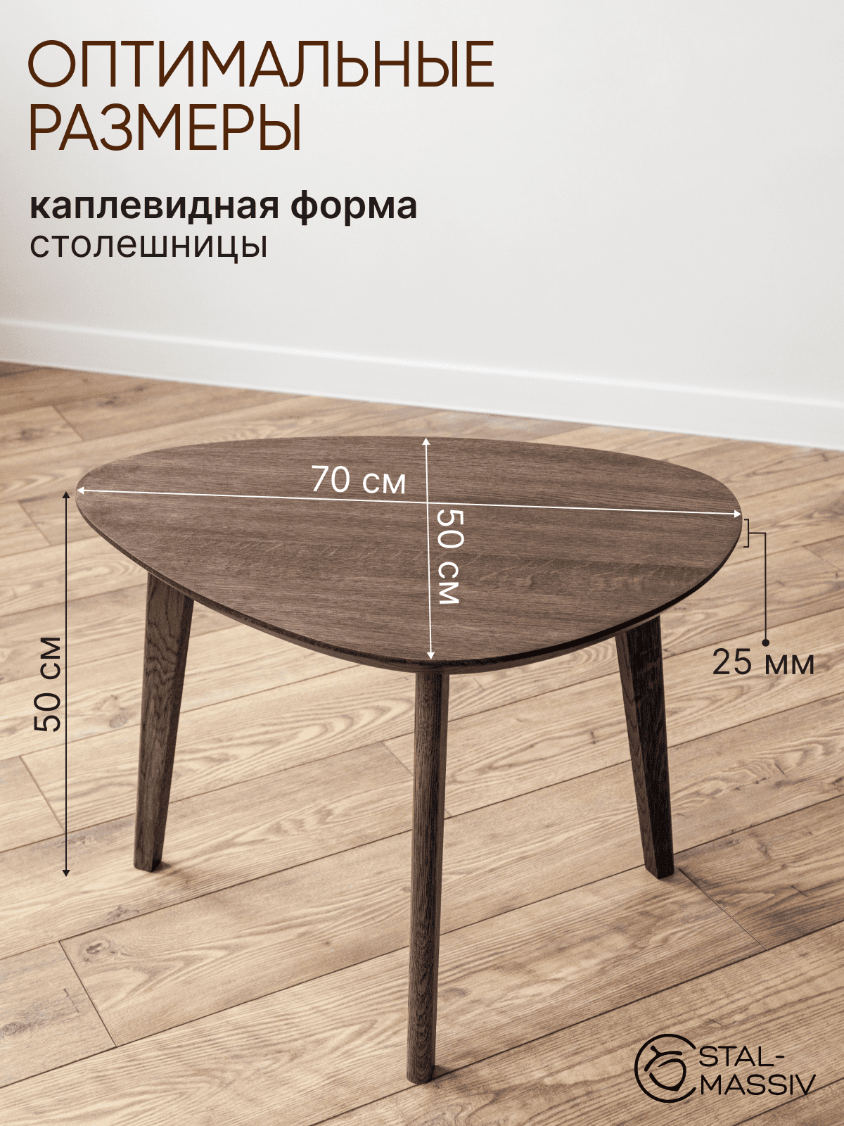 Столик журнальный дубовый DROOP-50 мореный дуб