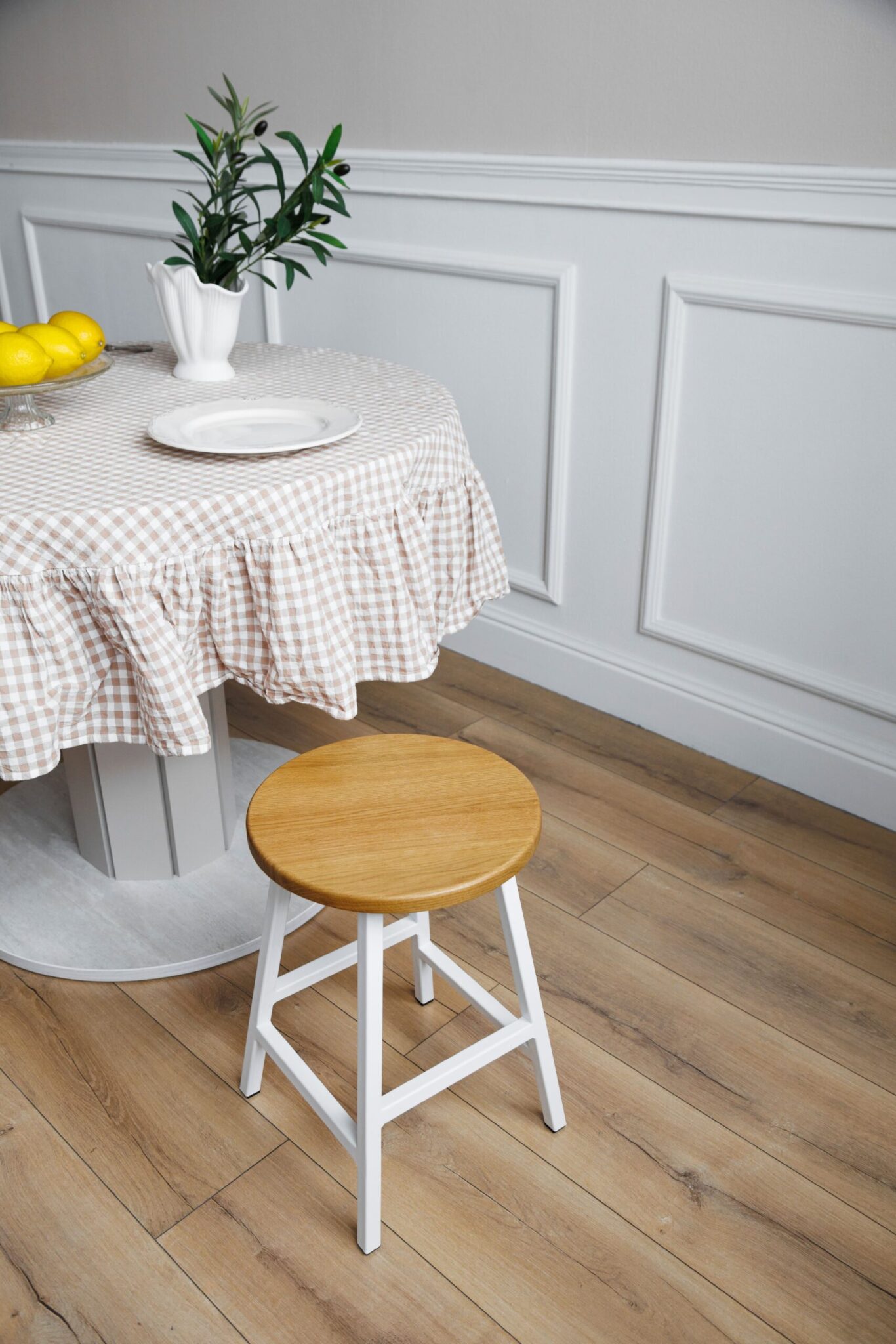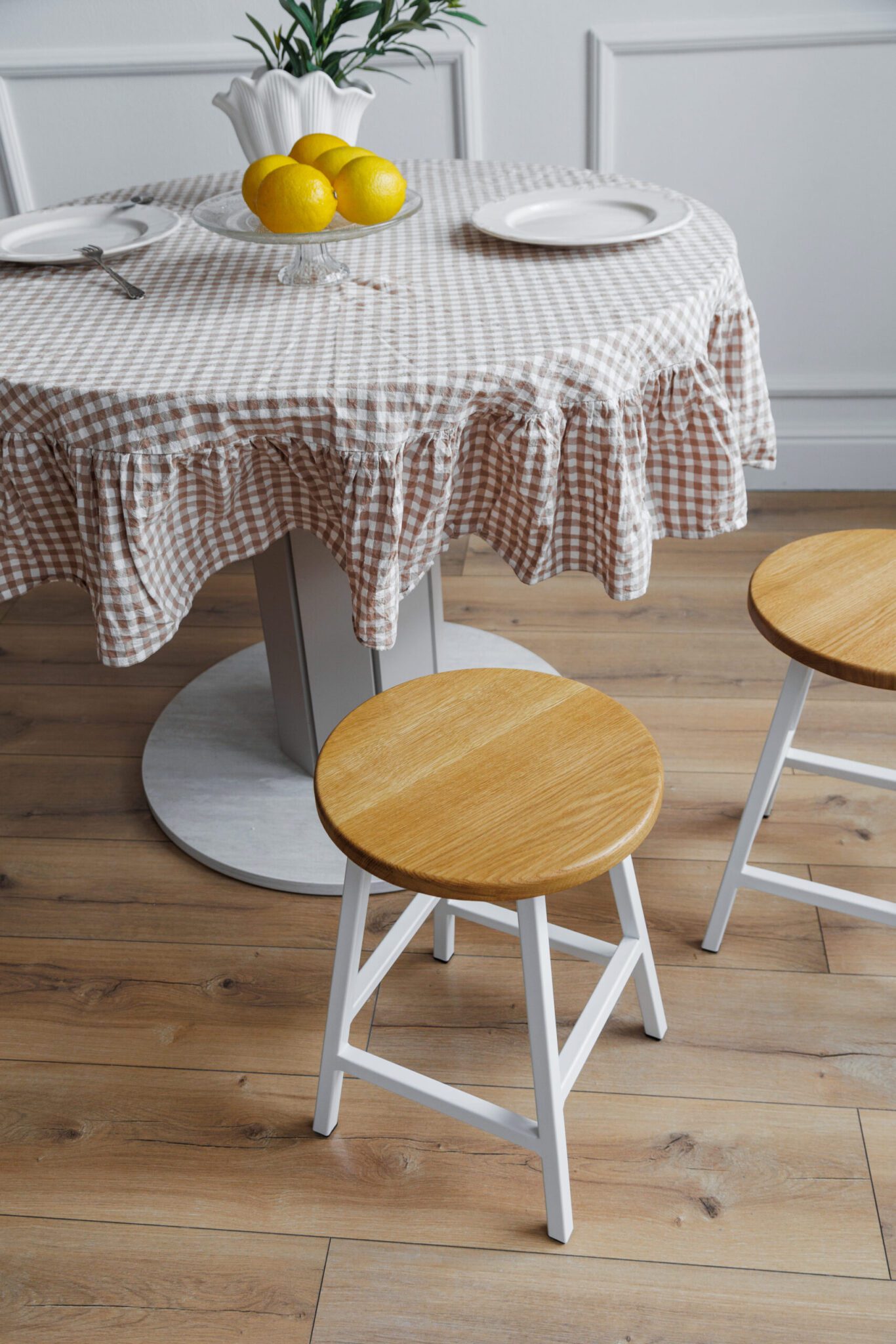 Табуреты круглые для кухни деревянные, комплект 2 шт, SMH-245 натуральный/белый
