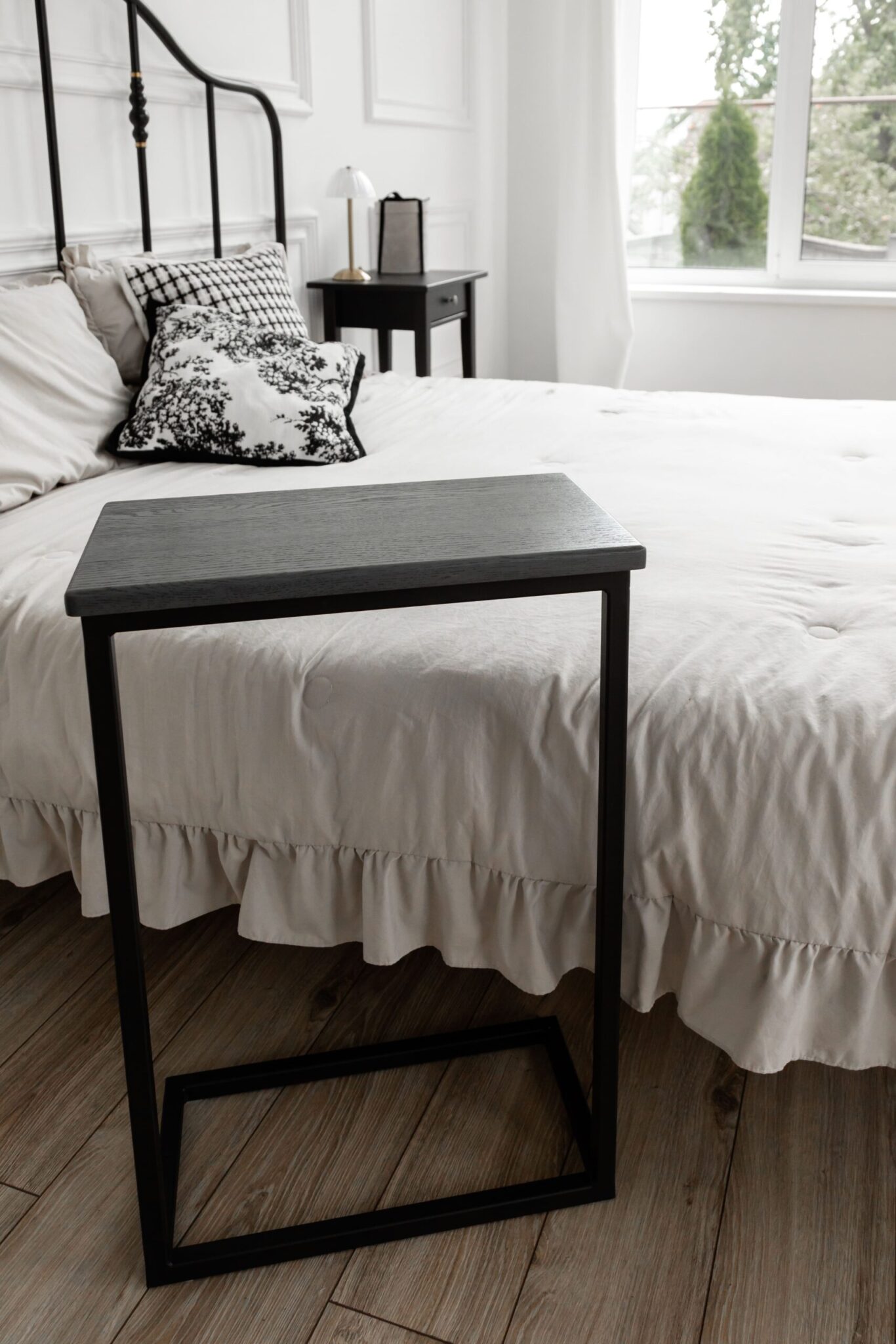 Приставной столик из массива дуба и стали создан для максимального удобства. Легко размещается у подлокотника дивана или кресла — для чашки кофе, книги или ноутбука. Прочное цельносварное гарантирует устойчивость, а натуральное дерево — долговечность и экологичность.